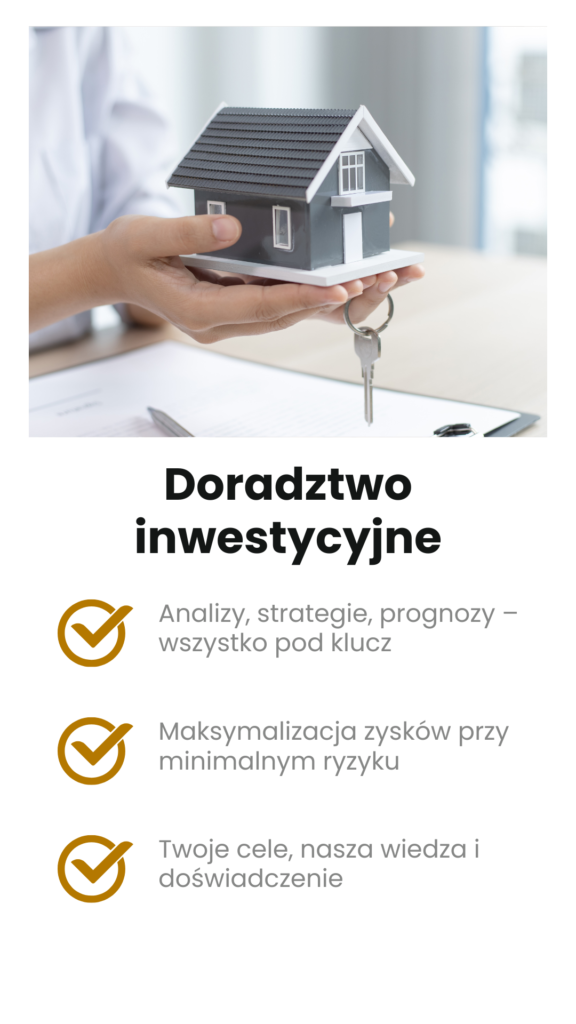 - Doradztwo inwestycyjne – pomoc w ocenie potencjału nieruchomości i planowaniu strategii inwestycyjnej.